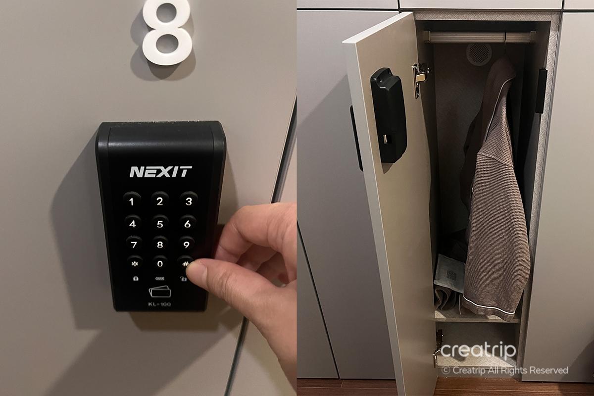 Wenn Sie den Spind öffnen, finden Sie einen Bademantel und Einwegunterwäsche vorbereitet. Körpertherapie ist eine Erfahrung, bei der Sie die bereitgestellte Einwegunterwäsche anziehen, nachdem Sie alle Ihre Kleidung und Unterwäsche ausgezogen haben. Nachdem Sie alles entfernt haben, ziehen Sie die Einwegunterwäsche an und tragen Sie einen Duschmantel. Bitte setzen Sie ein Passwort und schließen Sie den Spind.