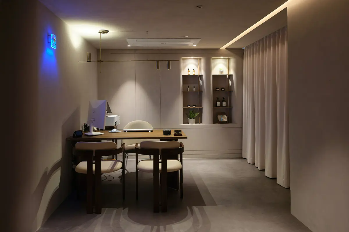 In dem Moment, in dem Sie hereinkommen, werden Sie von einer gemütlichen Atmosphäre und einem beruhigenden Duft willkommen geheißen, der Sie sofort entspannt und ein wenig schläfrig macht. Das Innere hat eine einzigartige koreanische Note, die Tradition mit Stil wunderschön verbindet.