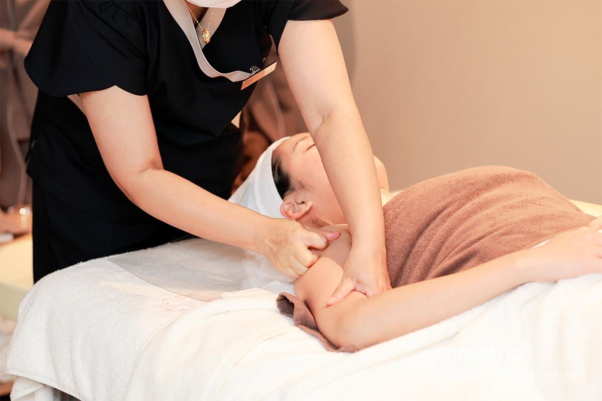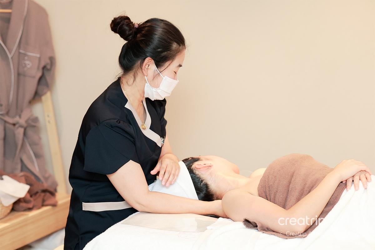 Da es sich um ein personalisiertes Programm handelt, können Sie Ihren Körper durch eine Konsultation diagnostizieren und ein Programm finden, das besser zu Ihnen passt. Da ich verspannte Schultern und einen steifen Rücken habe, habe ich mich entschieden, Körperpflege und das thermische Detox-Programm auszuprobieren, um die Immunität zu stärken.