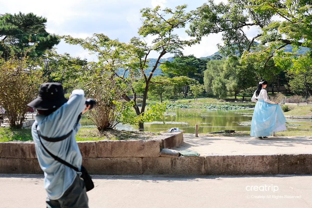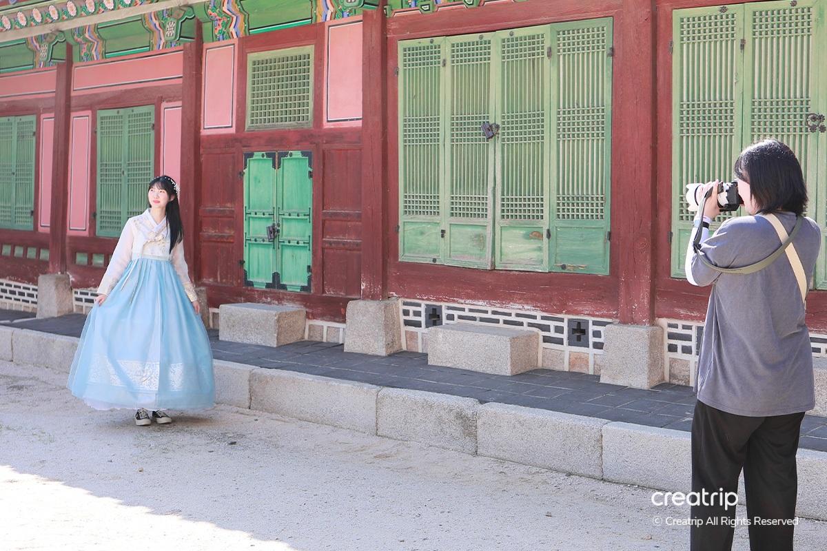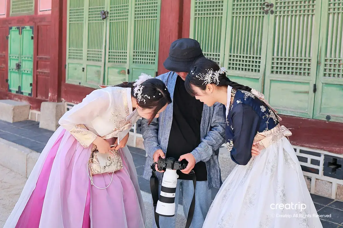 Zuerst besuchte ich den Hanbok-Laden 1 Stunde und 30 Minuten vor der Fotoshooting-Zeit, um Zeit für das Anpassen des Hanboks und das Makeup einzuplanen.Der Fotograf kam pünktlich vor dem Hanbok-Laden an und bestätigte die Reservierungsdetails von Creatrip.