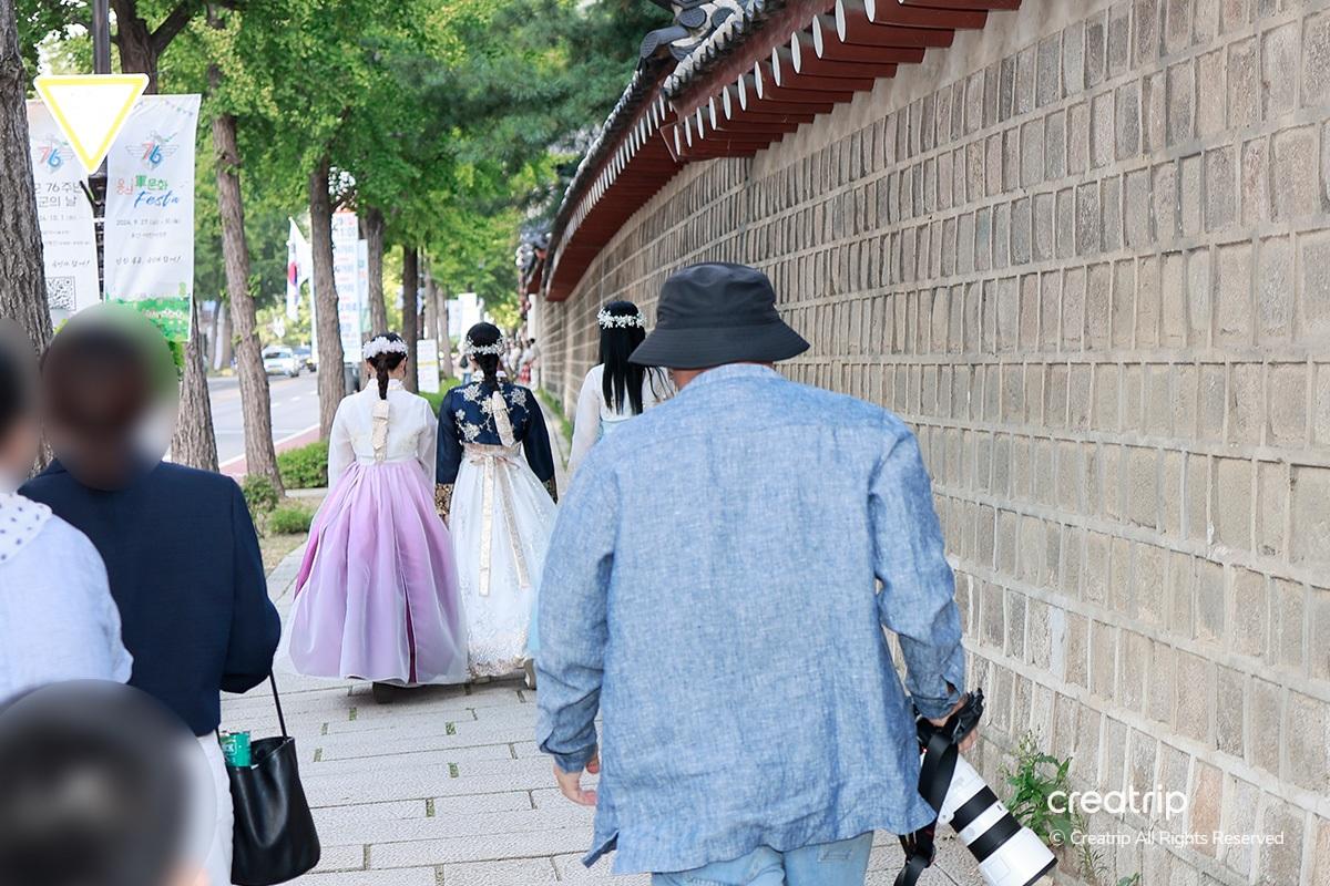 Wir sind zum Gyeongbokgung-Palast gezogen, um mit dem Fotografen zu shooten.Gelegentlich machten wir Fotos vor der schönen Steinmauer auf dem Weg zum Gyeongbokgung-Palast.