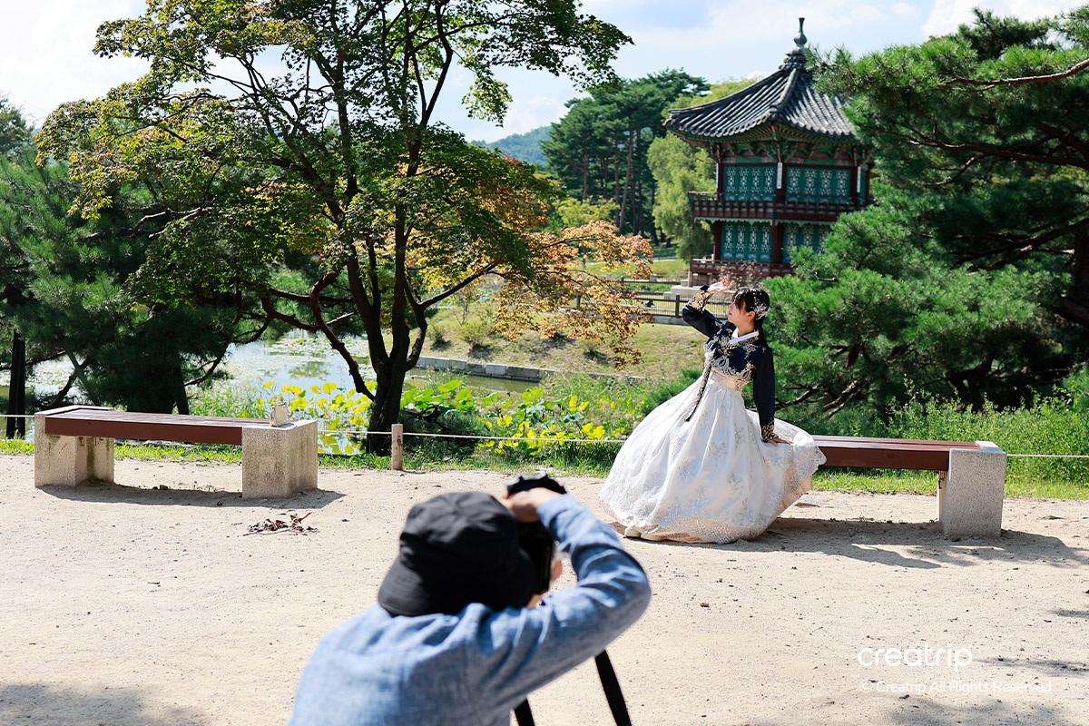 Der Fotograf widmete detaillierte Aufmerksamkeit darauf, wie man den Hanbok hält, wie man den Hanbok-Rock schön dreht und anderen Posen. Es war großartig, ohne Sorgen über Posen fotografieren zu können.
