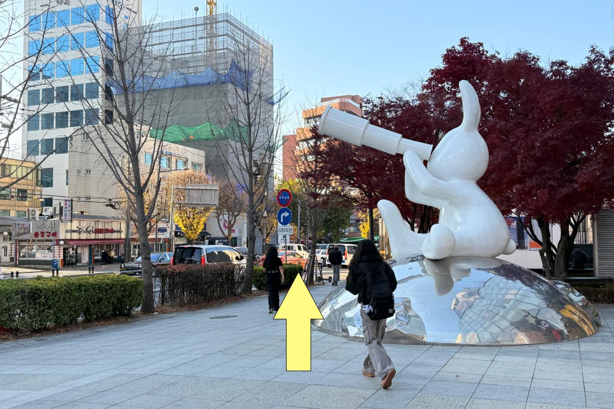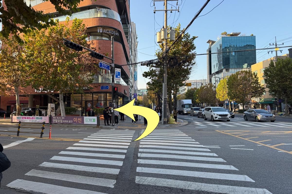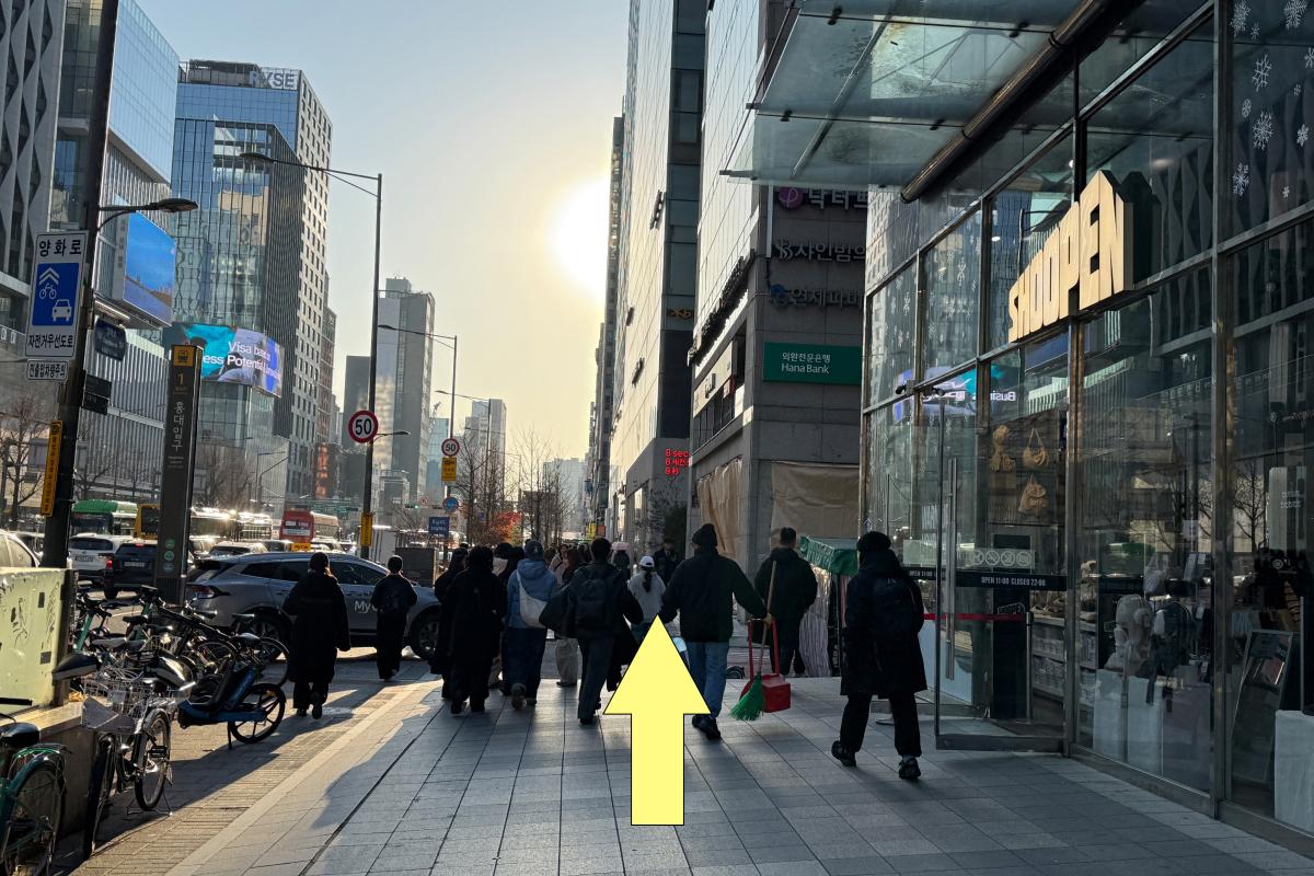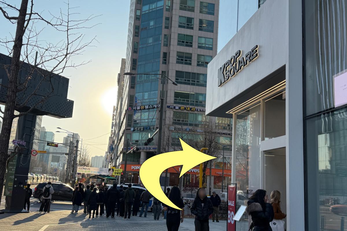 Biegen Sie vor dem Gebäude „KPOP SQUARE“ rechts ab.