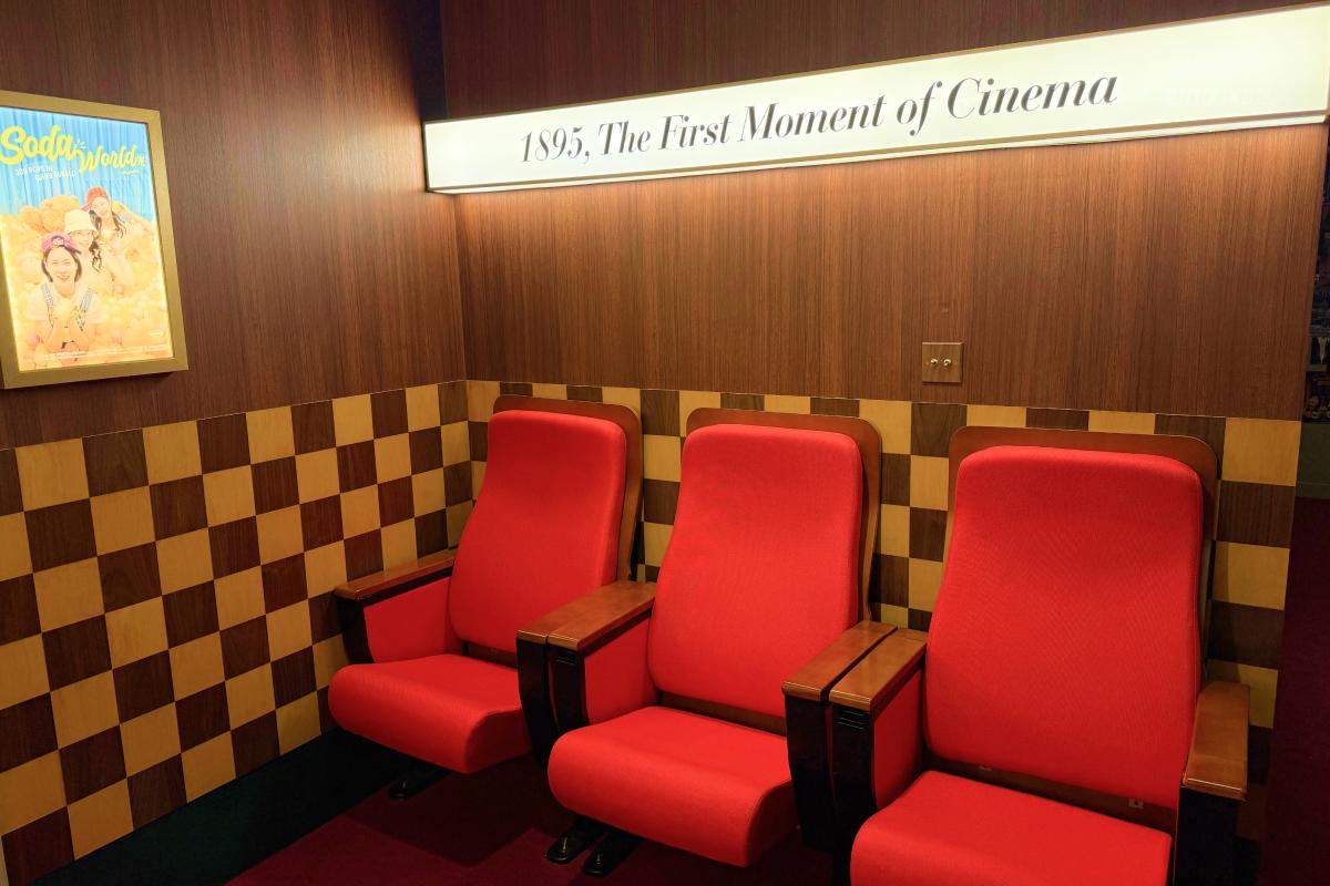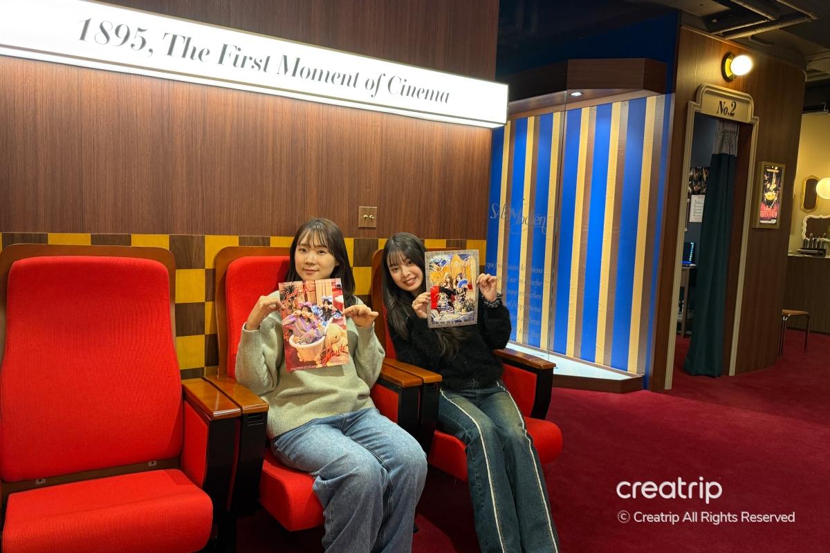Der Fußboden ist mit einem roten Teppich ausgelegt, die Sitze sind klassische rote Kinostühle wie in einem Theater, und dank der Vintage-Requisiten und der kinoähnlichen Beleuchtung im gesamten Raum wirkte es weniger wie ein Fotostudio und mehr wie das Betreten eines kleinen unabhängigen Kinos~!