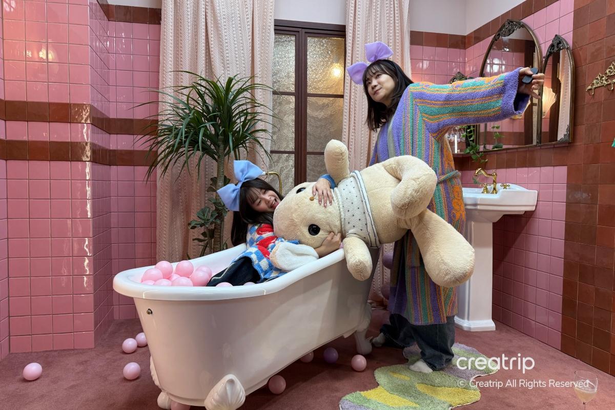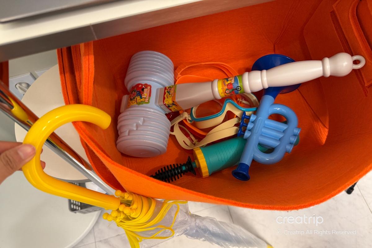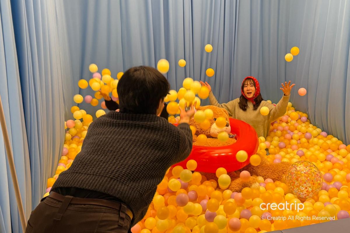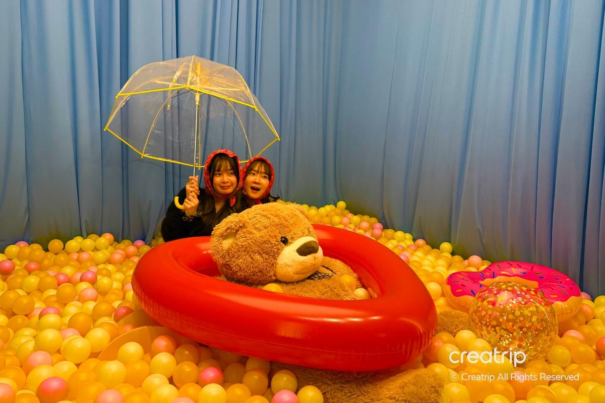 Du kannst dich an einen riesigen Teddybär schmiegen, mit Regenschirmen und Spielzeughämmern spielen und mehr.