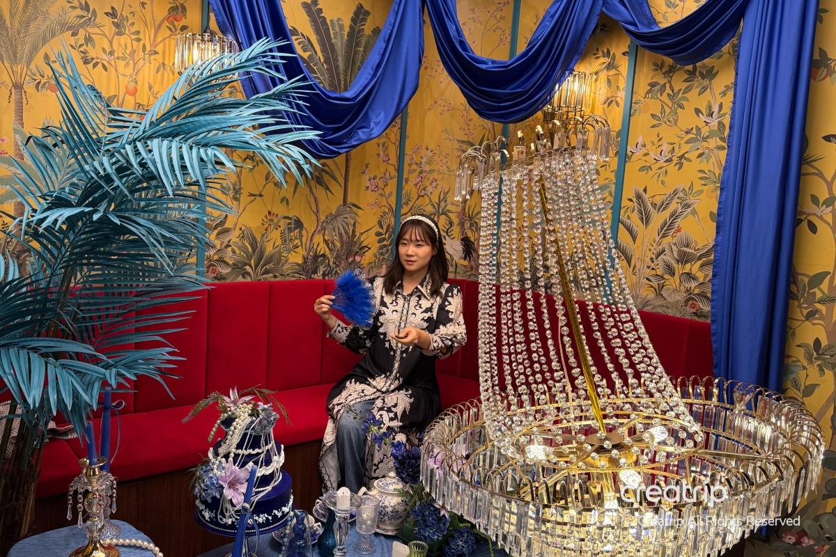 Dieses Konzept bietet einen Raum, der reich an Hintergrundfarben und Requisiten ist, daher empfehlen wir, für Ihr Outfit oder Ihre Accessoires auffällige Stücke zu wählen.