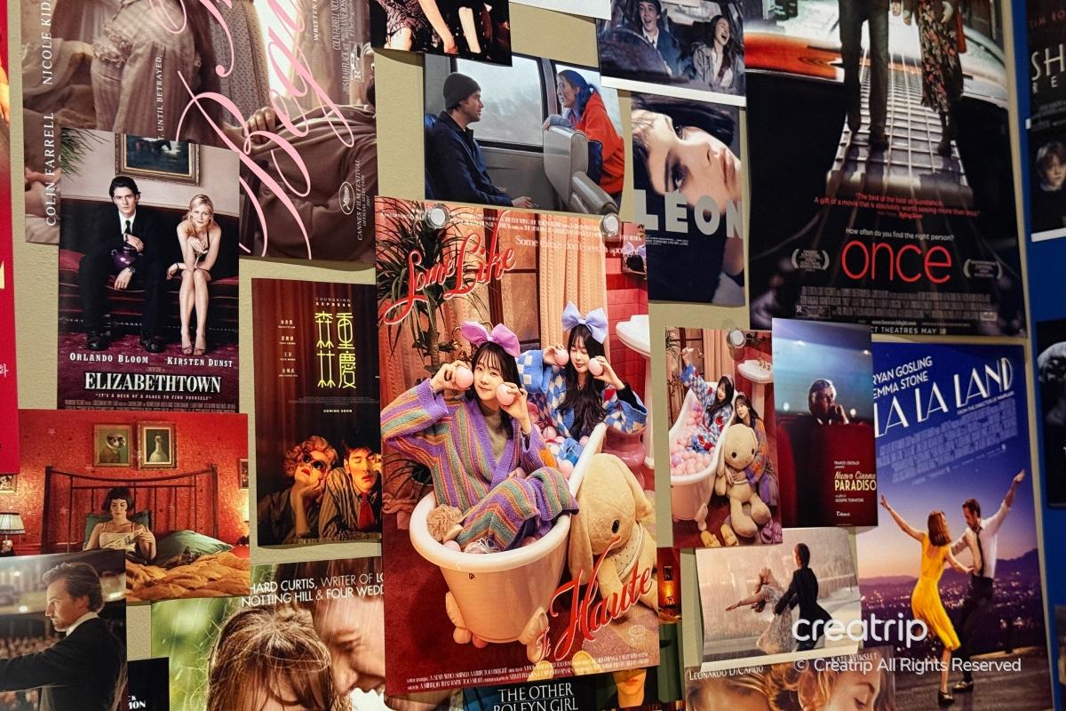 Eine Wand war komplett mit berühmten Filmplakaten bedeckt,