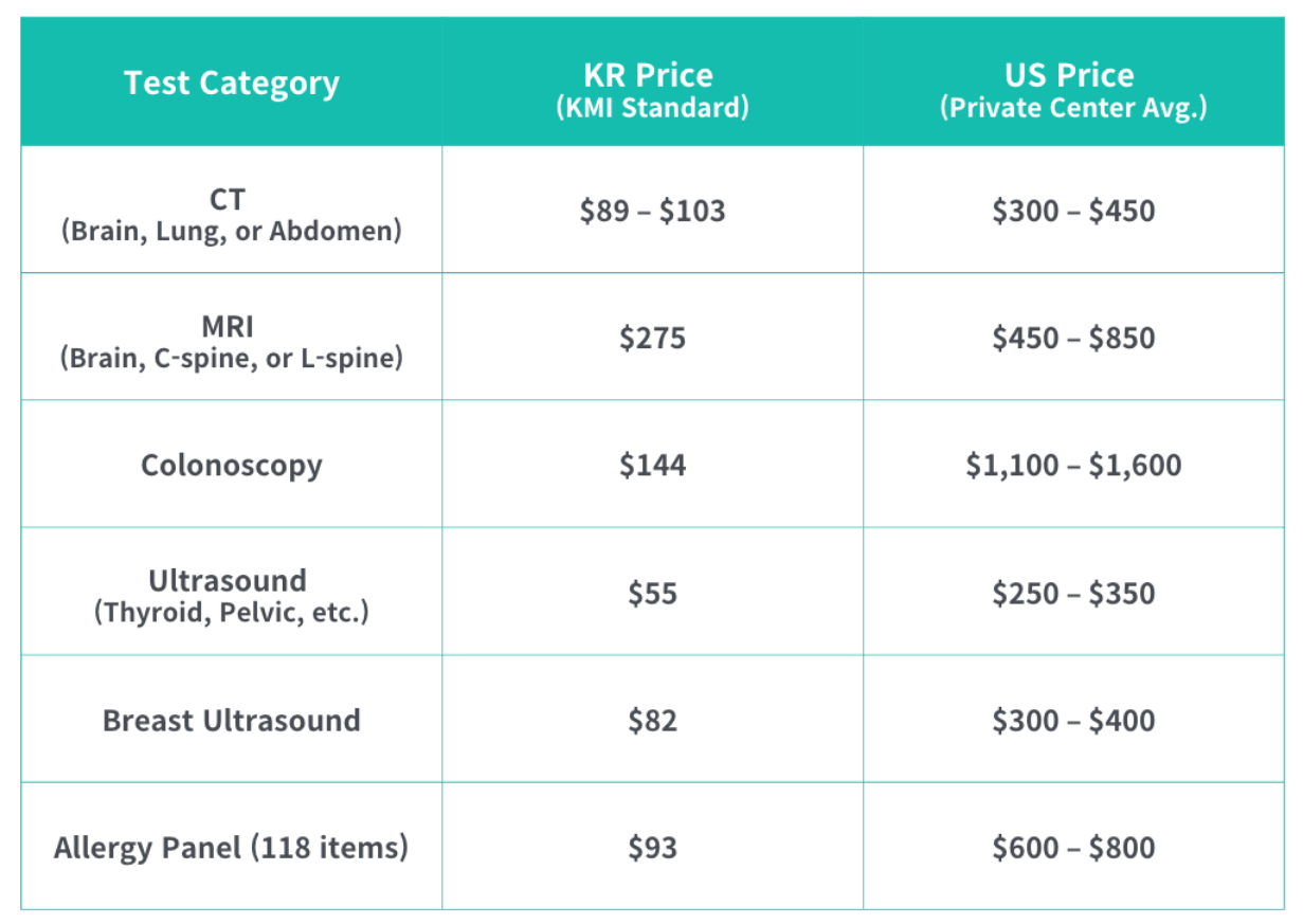 Ihre Antworten haben mich wirklich schockiert. Im Vergleich zu den USA können viele gängige Untersuchungen in Korea je nach Untersuchung 3- bis 10-mal günstiger sein. Zum Beispiel liegt laut KMI-Preisen MRI bei etwa 300 $ und Colonoscopy bei etwa 150 $.