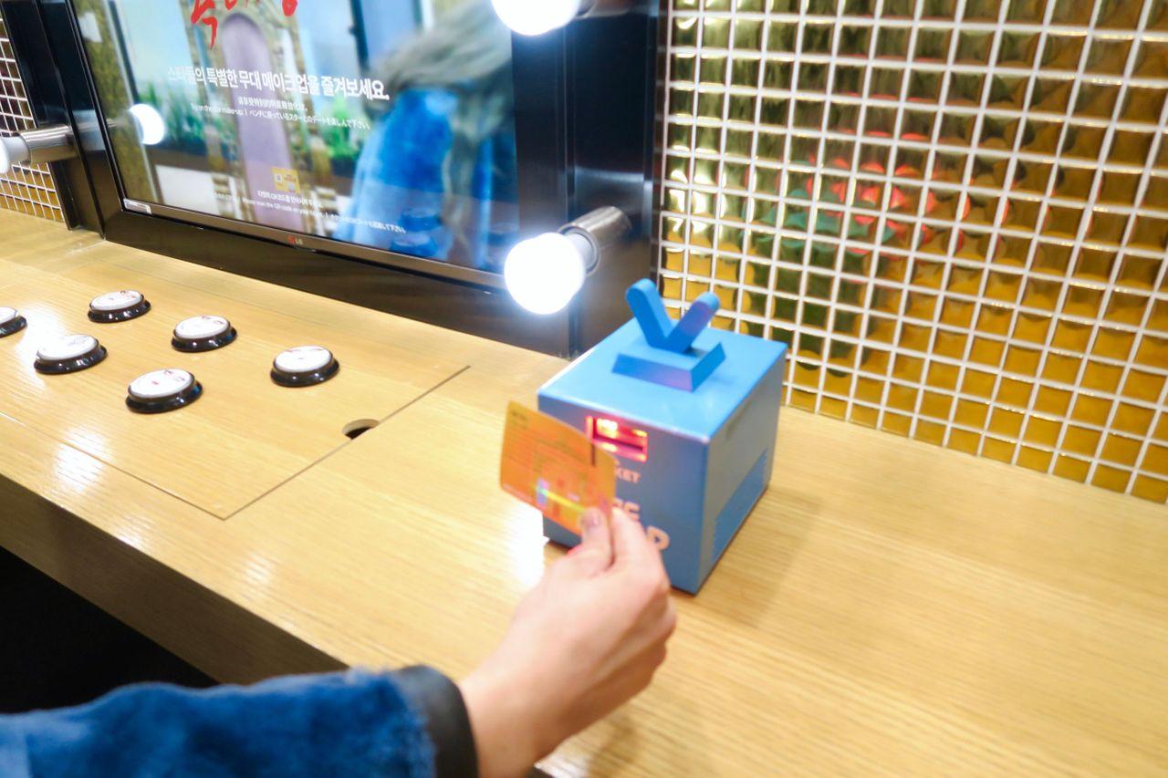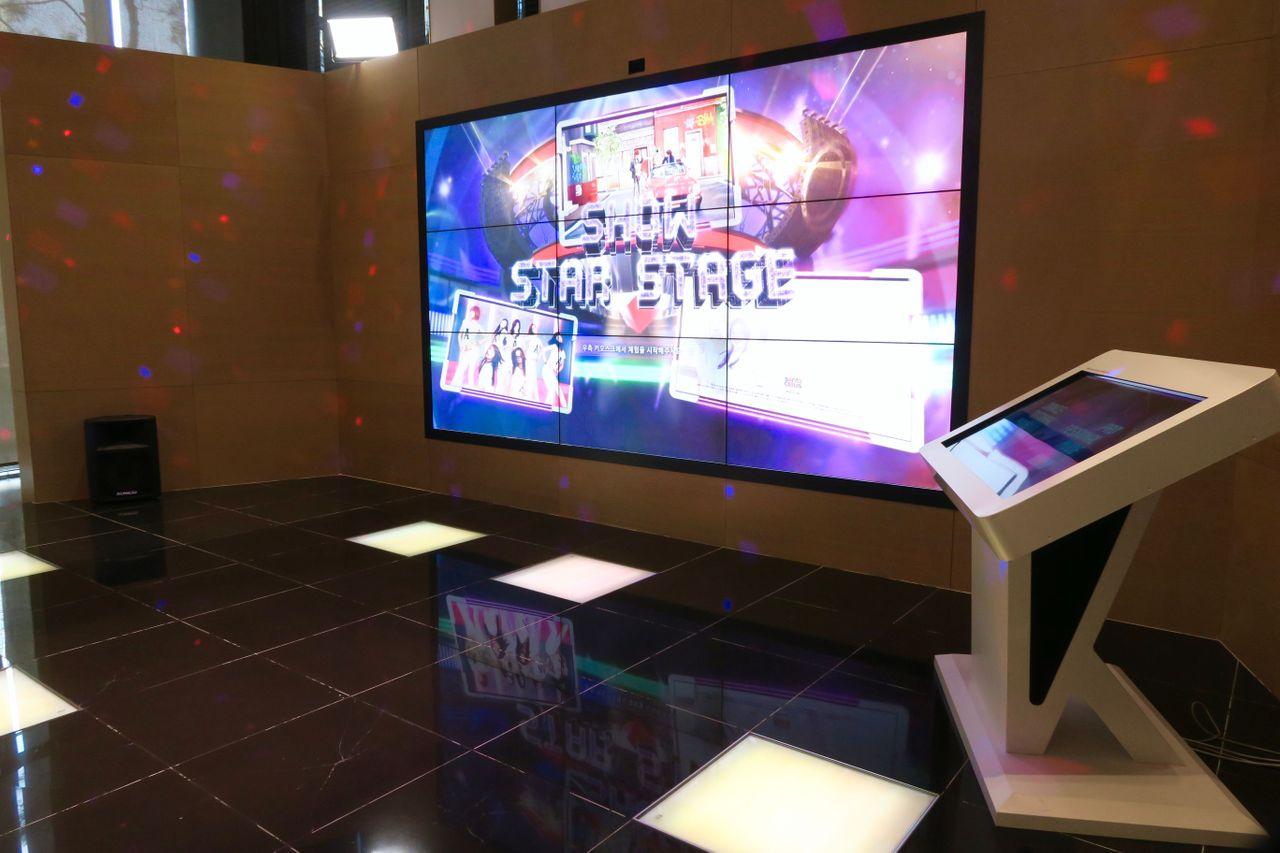 Für diejenigen, die K-POP lieben, möchten Sie auf dieser Tanzfläche tanzen! Wenn Sie ein Lied auswählen, kommen die Sänger dieses Liedes heraus und bringen Ihnen bei, wie man tanzt. Mein Freund und ich tanzten zu Apinks Lied 'Mr.chu'.