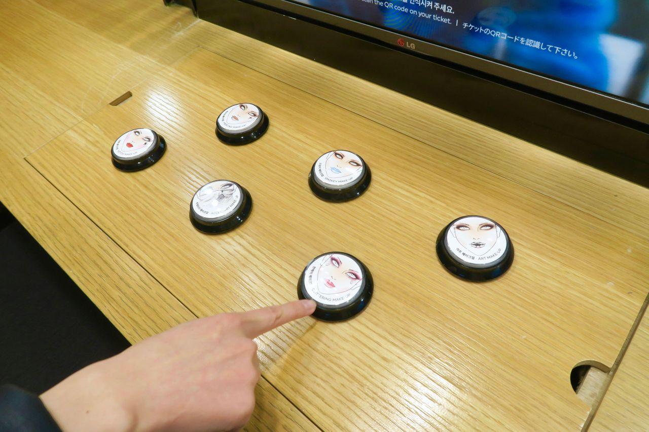 Zuerst platzieren Sie das Ticket auf einer Maschine und wählen den Stil des Make-ups, den Sie möchten. Ich wählte ein wenig ausgefallenes, aber sehr elegantes Make-up. Bevor das Make-up wirksam wird, wird zuerst die Struktur des Gesichts bestimmt und das virtuelle Make-up beginnt darauf. Ich war von dem Make-up begeistert! Jedes Mal, wenn ich mit den Augen blinzelte, fiel mein ausgefallenes Augen-Make-up auf!