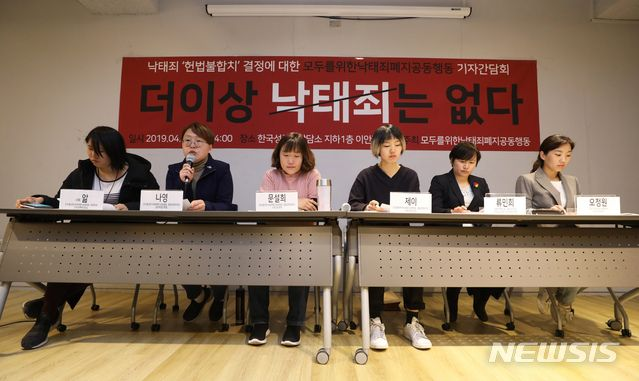 Am 11. April 2019 wurde das Gesetz, das besagte, dass Frauen, die einen Schwangerschaftsabbruch selbst herbeiführen, mit bis zu einem Jahr Gefängnis oder bis zu 2 Millionen Won Geldstrafe (Koreanisches Strafgesetzbuch; Artikel 269) bestraft werden, vom koreanischen Verfassungsgericht für verfassungswidrig erklärt und das Gesetz zur Änderung angeordnet, ebenso wie das Gesetz, das Frauen verbot, Abtreibungen von medizinischem Fachpersonal durchführen zu lassen (Artikel 270).