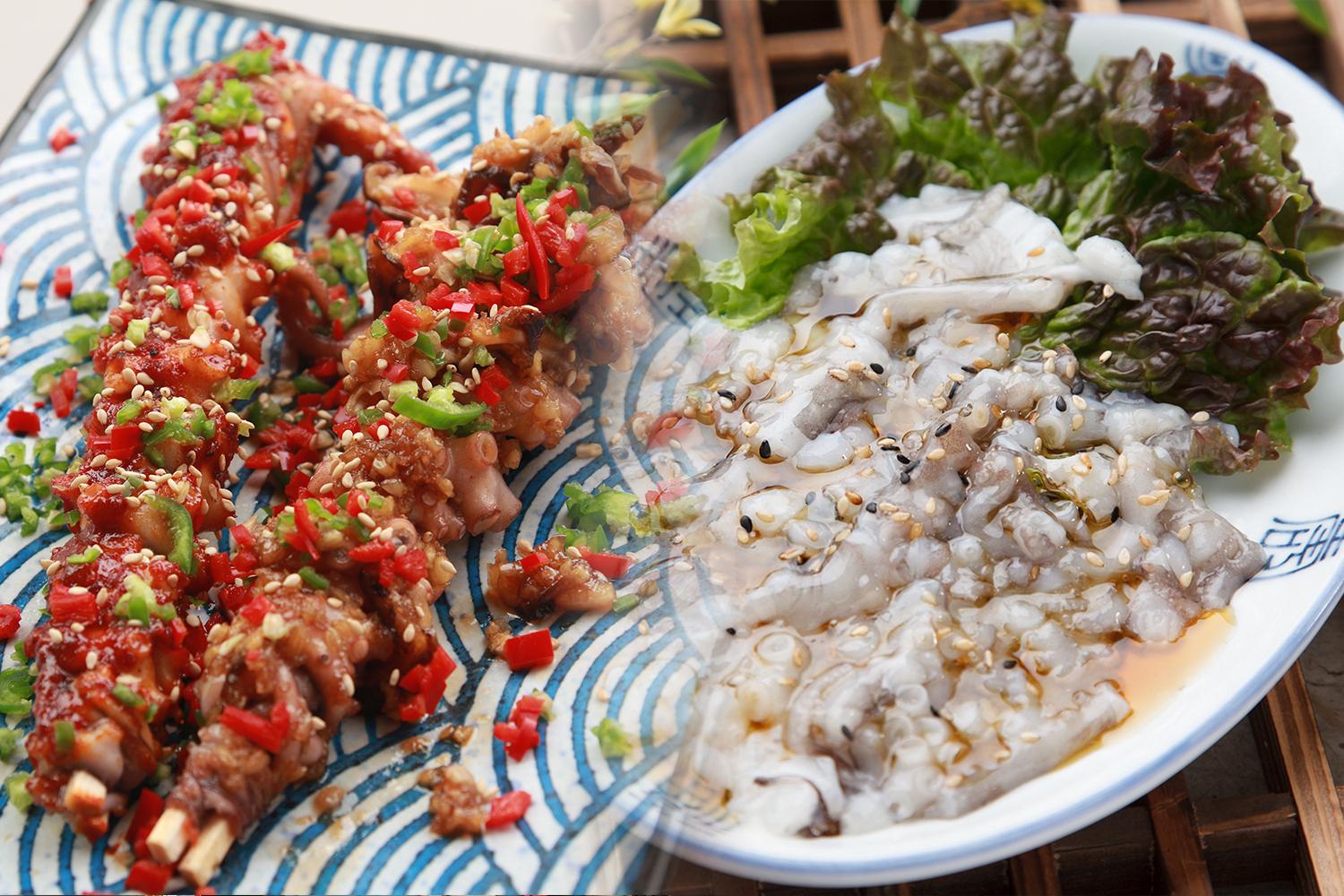 2. Lebender Oktopus & Oktopus-Stick산낙지와 낙지호롱