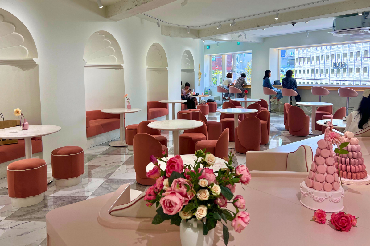 There's even a cafe on the second floor, where you can enjoy the prettiest desserts and drinks with a view of the famous Dior Cafe across the street.