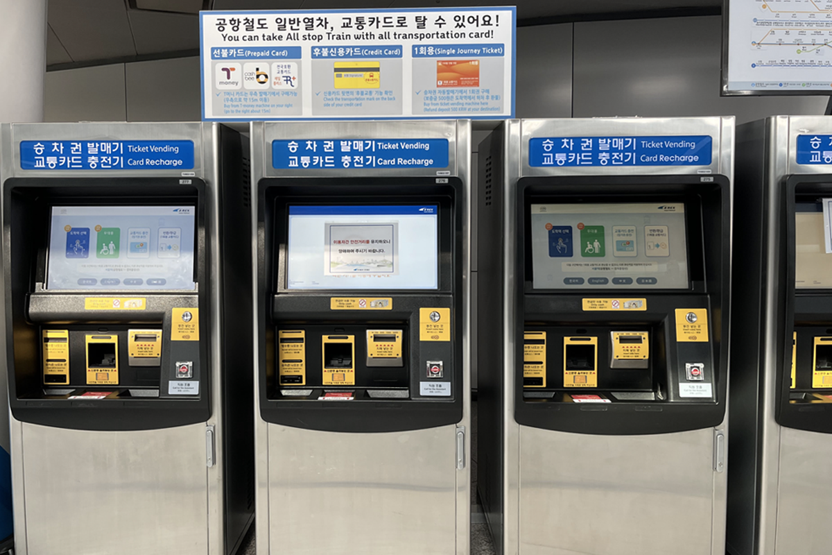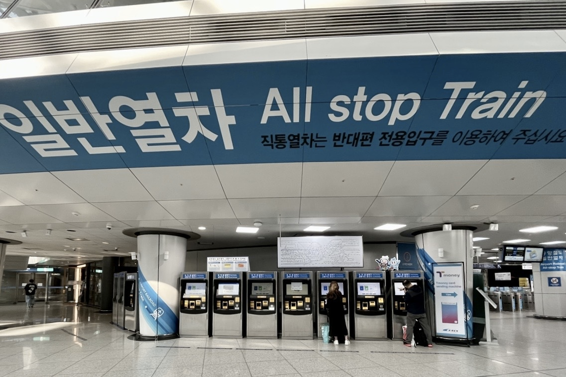 In front of the boarding point is the ticket machine for the airport railway. The ticket machine can be operated in English, Korea, Japanese, and Chinese. You can get your tickets for the train here, but if you do, you cannot apply any discounts. We suggest reserving beforehand if you want to take advantage of any deals or promotions.