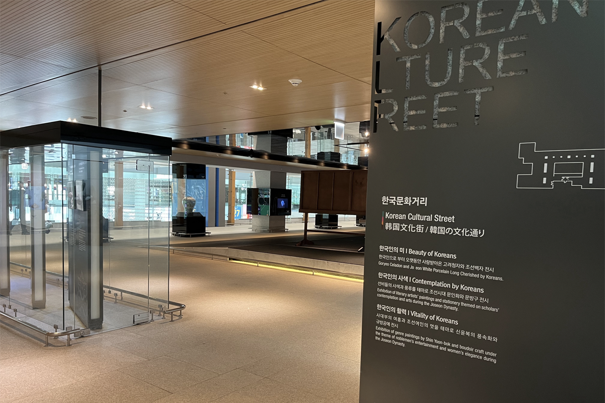 There is a small cultural exhibition area in front of the food area on the fourth floor where some traditional Korean relics are displayed.