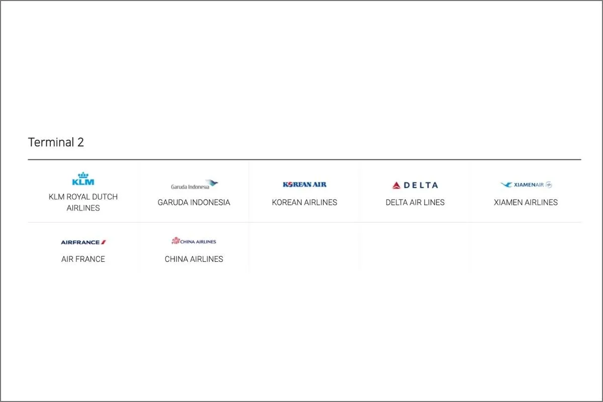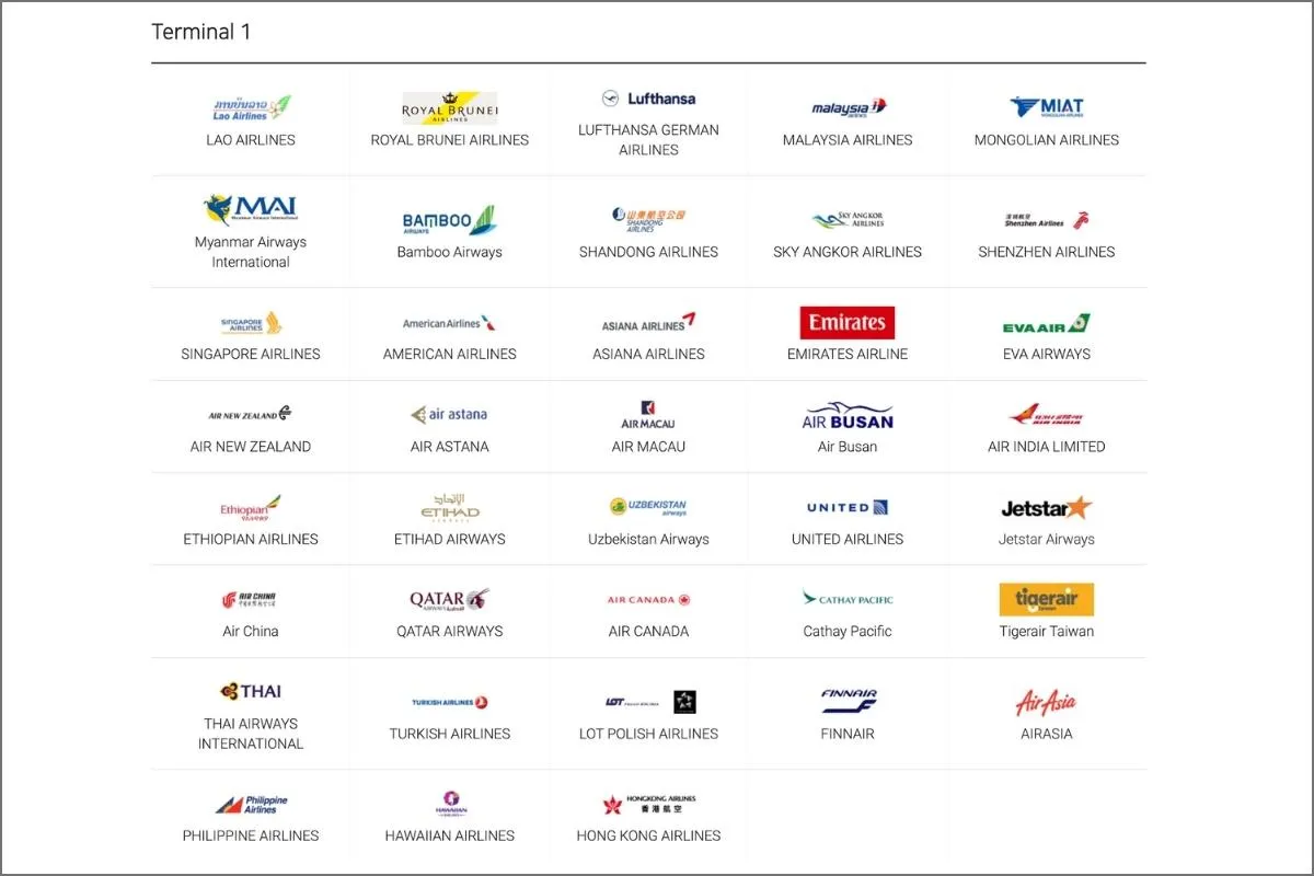 There are more airlines stationed in Terminal 1 than there are in Terminal 2. Popular airlines such as United Airlines, Air Canada, Asiana Airlines and many more are located here.
