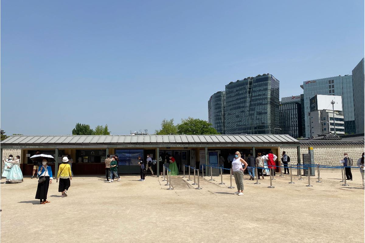 When we entered through Gwanghwamun, the main gate, we saw the ticket booths to the right, but there was no need for us to stop by. As we knew, all guests wearing hanbok are let in for free!
