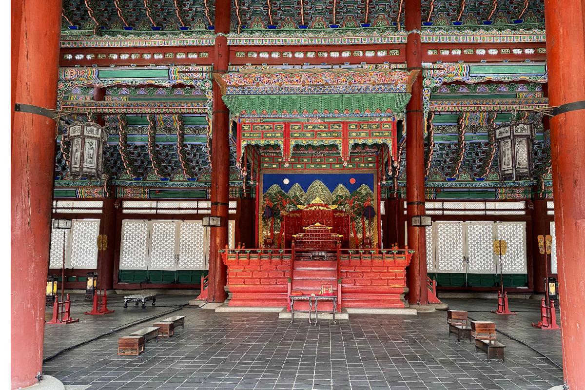 Next, we made our way to the Sajeongjeon Hall, the Council Hall where the king would regularly discuss national affairs with his court officials. Once again, we could see people lining up to look inside.