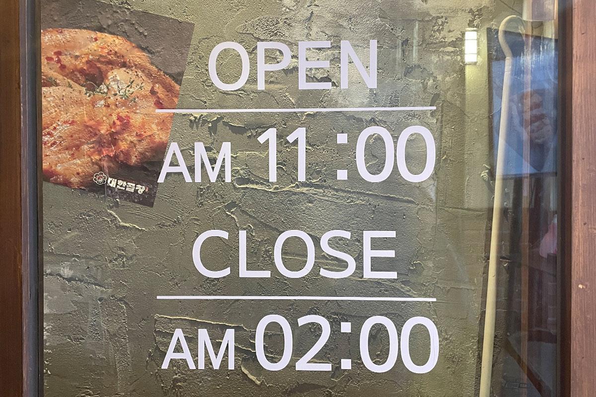 The restaurant runs from 11:00 AM to 2:00 AM, so you can enjoy gopchang at pretty much any time of the day!