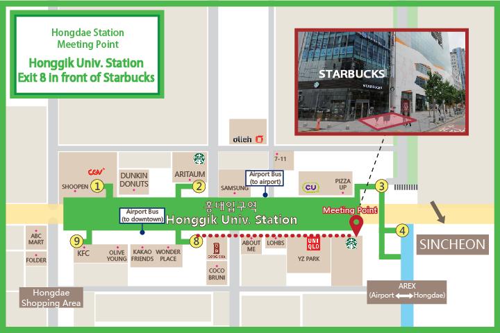[If applicable] 07:20 Hongik Univ. Station Exit 8 (In front of Starbucks)