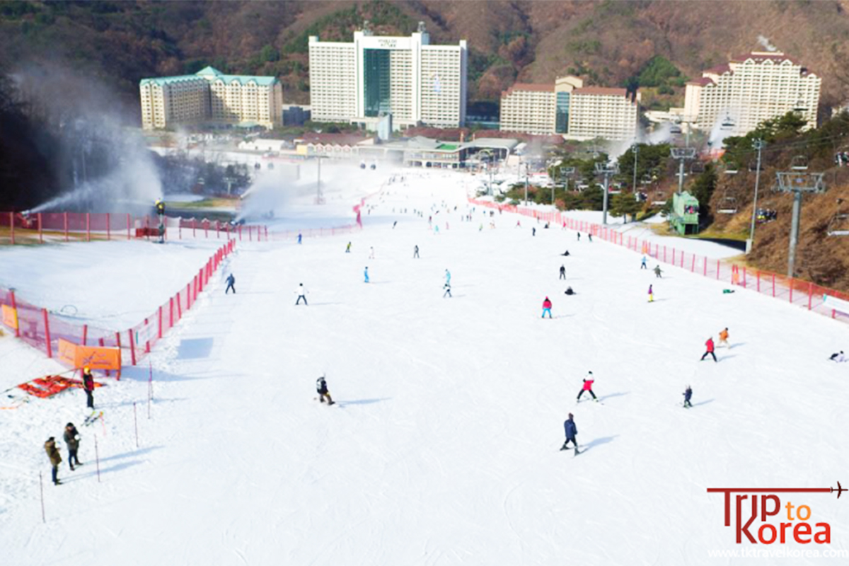 Vivaldi Park is the largest ski resort in Hongcheon-gun, Gangwon-do, and is not too far from Seoul. The resort is large and spacious, with a maximum capacity of about 20,000 people per day. Koreans love Vivaldi Park because you can enjoy amazing scenery and fully feel the atmosphere of winter!
