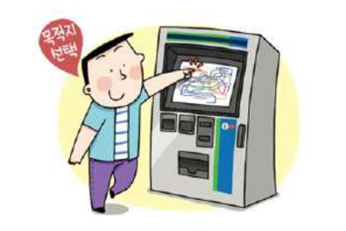 Step 1 | Issue a 1-time pass on the ticket machine. ![]() At the 'One-time Pass/Transportation Card Charging' machine, select your destination, insert the fare and a 500 won deposit, and then receive the issued card. |