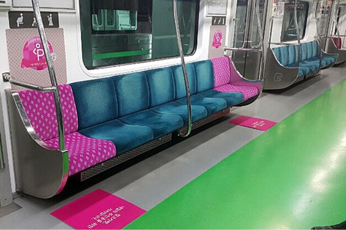 In Korean subways, 30% of seats are designated for the elderly and disabled. These seats are mostly located on both sides of the car and are a different color. There are also separate seats for pregnant women in general seating areas. These seats are pink, and in some regions, an announcement will be made when you sit down, so please be aware after boarding!