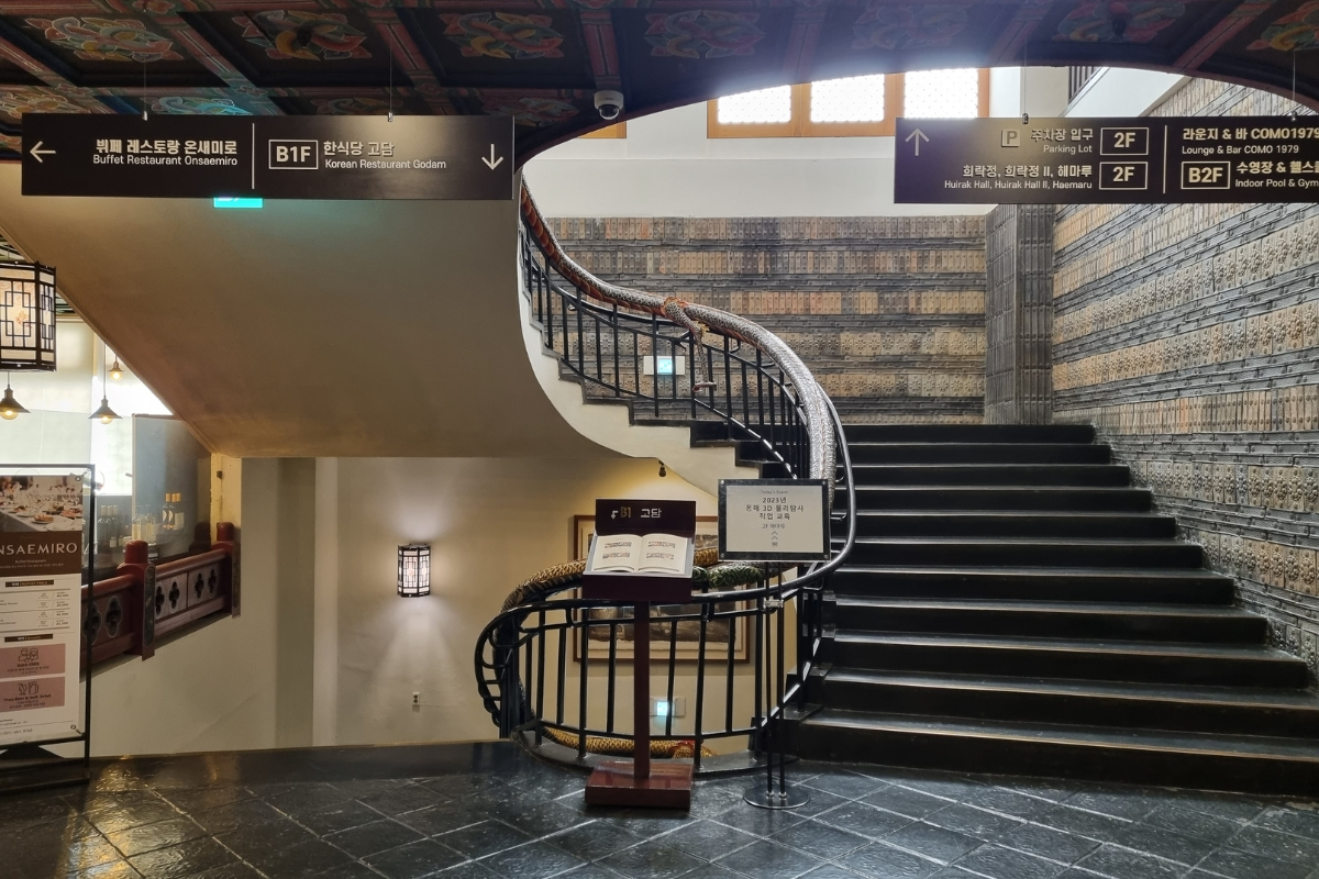 The lobby area has a traditional Korean style interior mixed with some modern features. We could see why this was the perfect filming location as a hotel in North Korea in the drama!