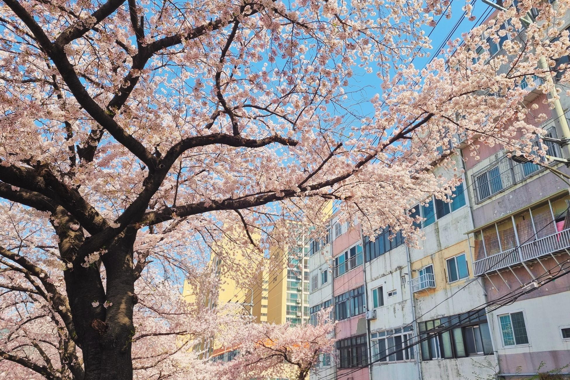 If you visit Busan in the spring, the Samick Beach Town Apartment Complex is a must! We got so many nice photos and seeing the cherry blossoms in full bloom was unforgettable. Can you imagine living in these apartments?