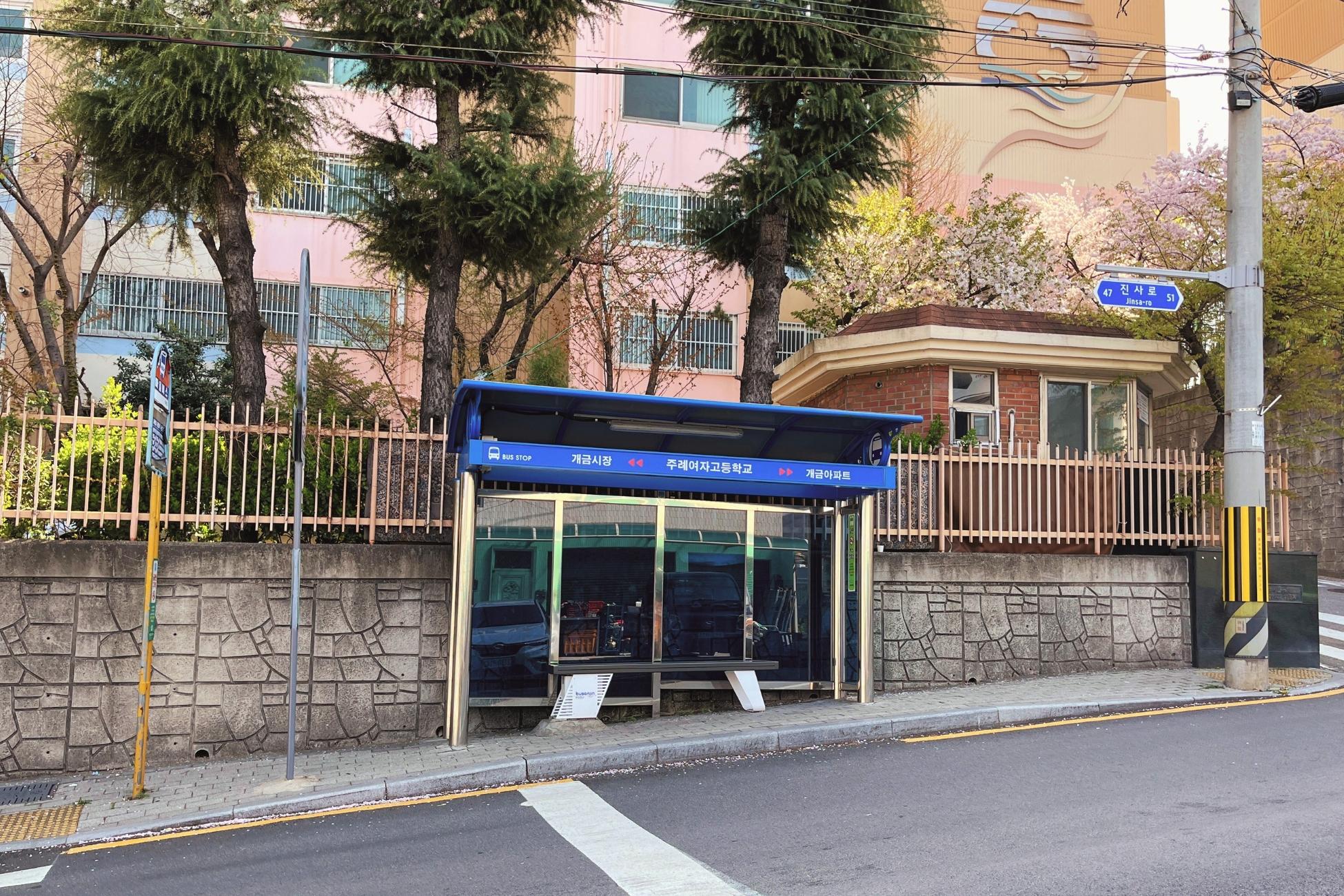 You can take Bus 67 from Busan Station Bus Stop to Jurye Girls' High School Bus Stop to get to Gaegeum Cherry Blossom Road. It's about a 40-minute bus ride.