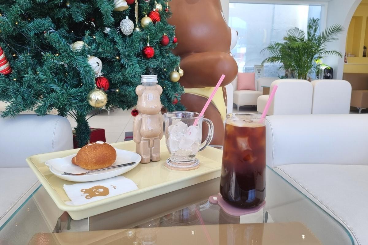 We ordered the Bear Butter Bread 곰도리 버터빵, an Iced Milk Tea 아이스 밀크티 (5,000 KRW), and an Iced Americano 아이스아메리카노 (3,400 KRW). The Bear Butter Bread was super cute and delicious! The drinks were great as well and the Milk Tea came in this cute bear bottle. We loved it here!