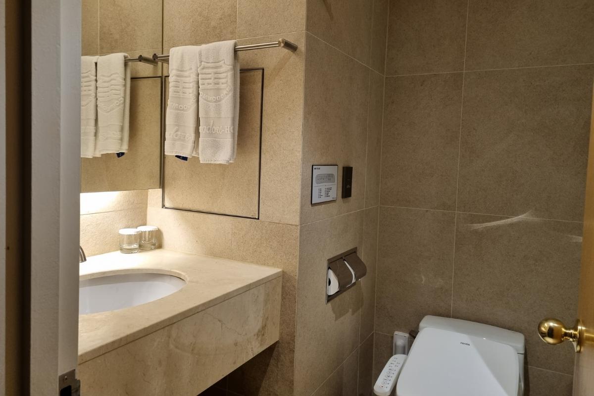 We stayed at the Commodore Hotel, which is just a five-minute taxi ride from Busan Station. We chose this hotel because not only is it absolutely beautiful and quite affordable, but it was also a filming location for the K-drama Crash Landing On You! Check out our blog to see more filming locations for Crash Landing On You!