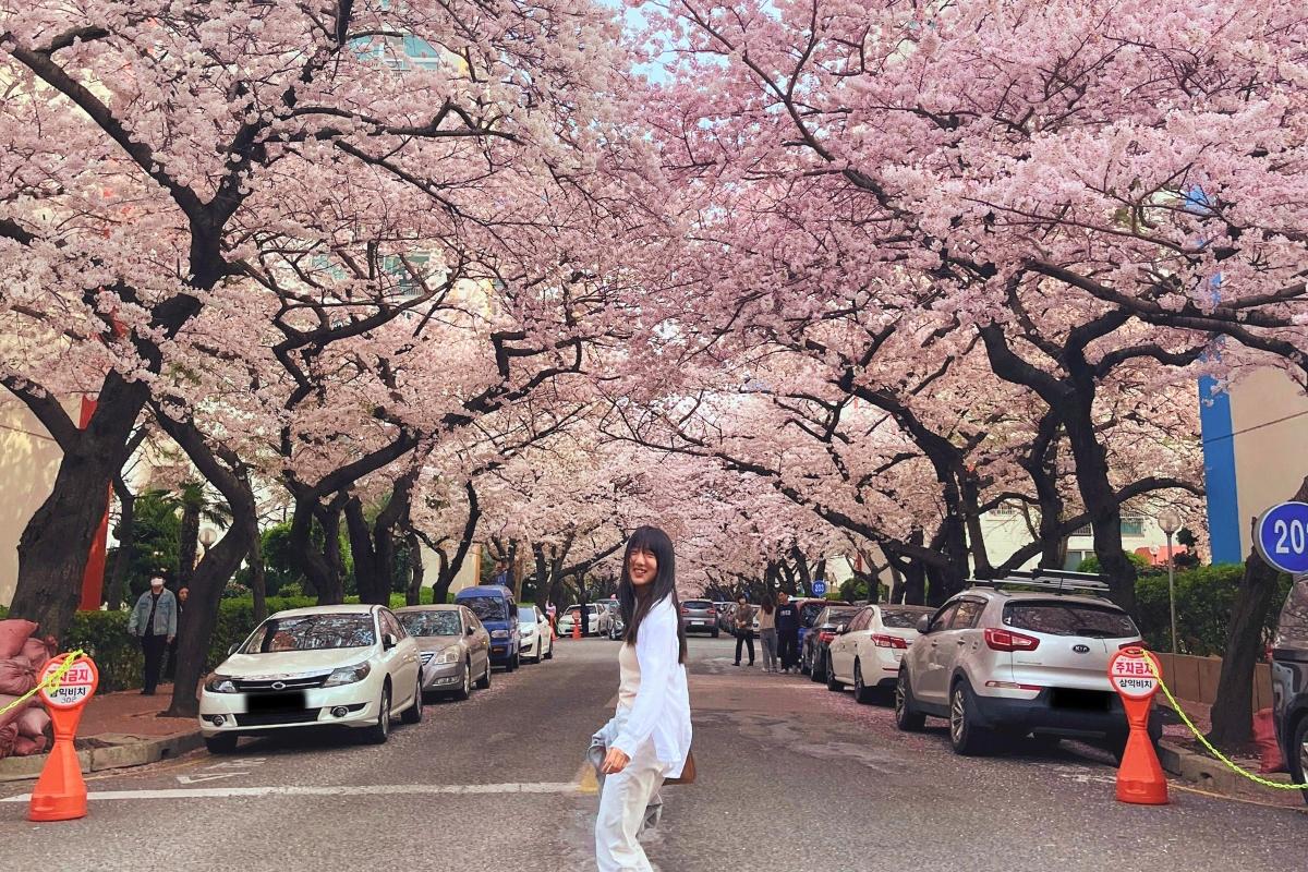 Since it was cherry blossom season, we wanted to make the most of it. After dropping off our luggage at the Busan Station lockers and having a simple breakfast at the McDonald's, we headed to Gaegeum Cherry Blossom Road, which has become an increasingly well-known cherry blossom site!