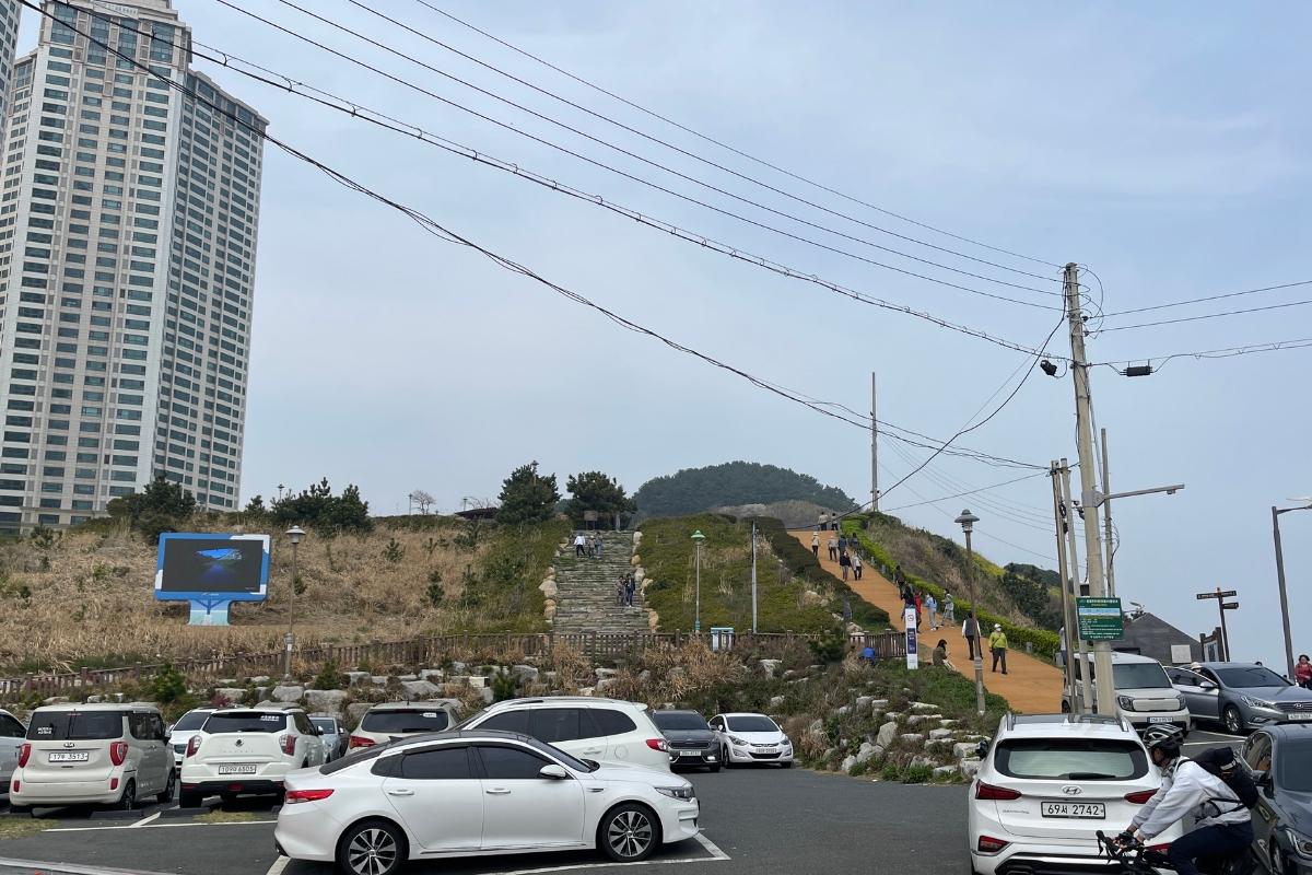 We took Bus 61 from Naengjeong Pass Bus Stop in Gaegeum to Songdo Entrance Bus Stop, but there are other paths as well. This route took just under an hour and stopped right by a bridge (육교) that had a great view of the surrounding area!