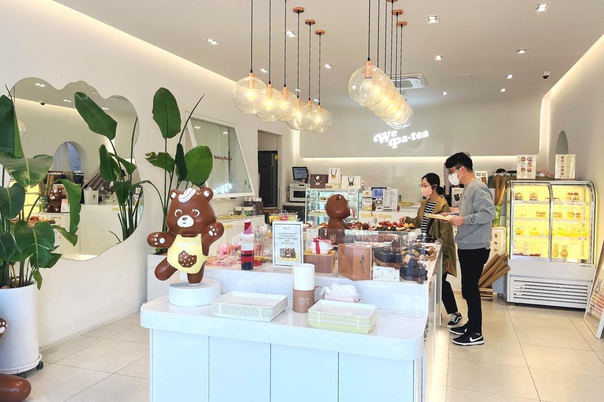 We Pa-Tea's signature character is this cute little brown bear, which you'll see all over the cafe - even in the form of a pastry! All the delicious desserts are displayed on the first floor as seen in the photo above.