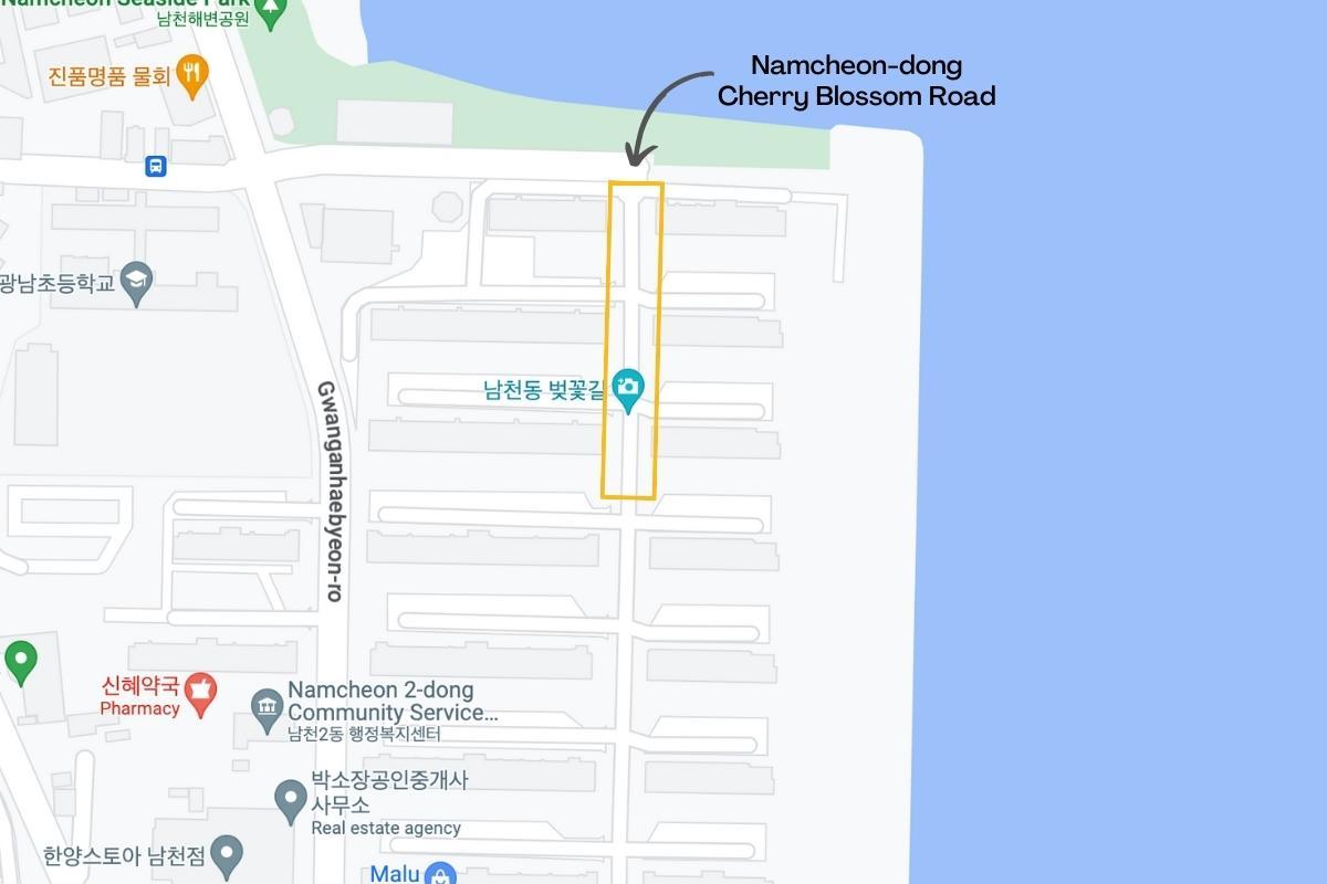 After resting up at a cafe, we headed to one of Busan's most famous cherry blossom sites, Samick Beach Town Apartment Complex. This area is right by Gwangalli Beach, so you can walk there from the beach in just 15-20 minutes.