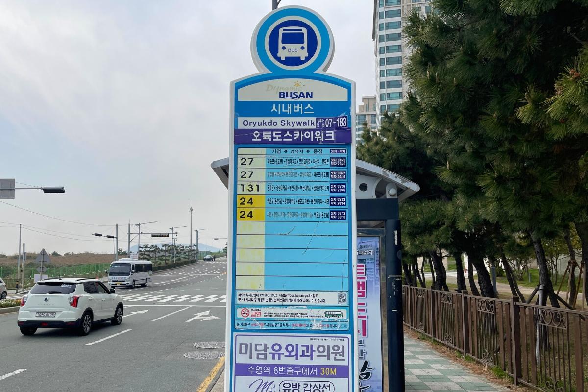 We took Bus 27 from Busan Station Bus Stop all the way to Oryukdo Skywalk Bus Stop.
