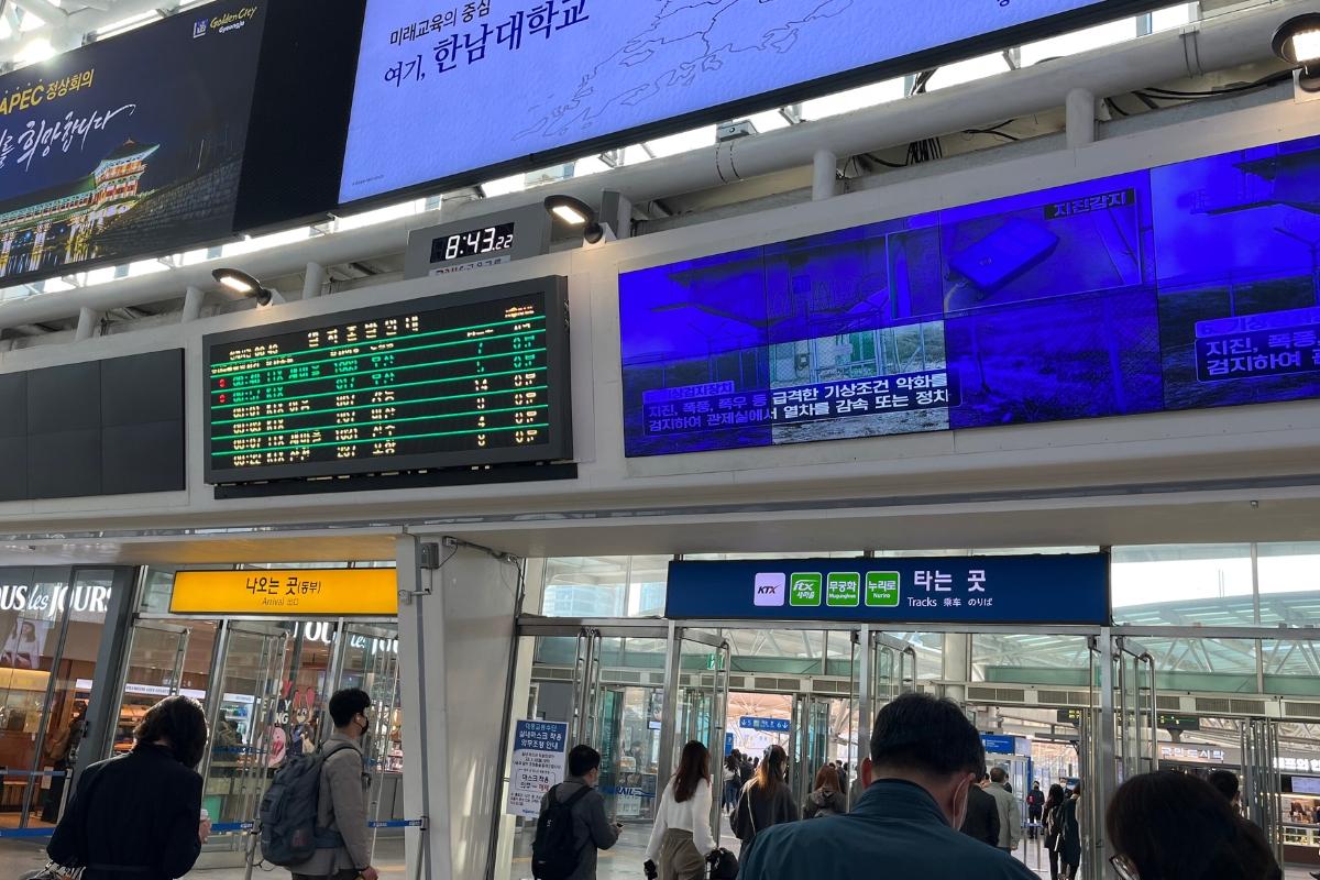 When you arrive at Seoul Station, you can check the train times displayed on the large monitor near the entrance to the train tracks. You'll also be able to check which platform your train is on!