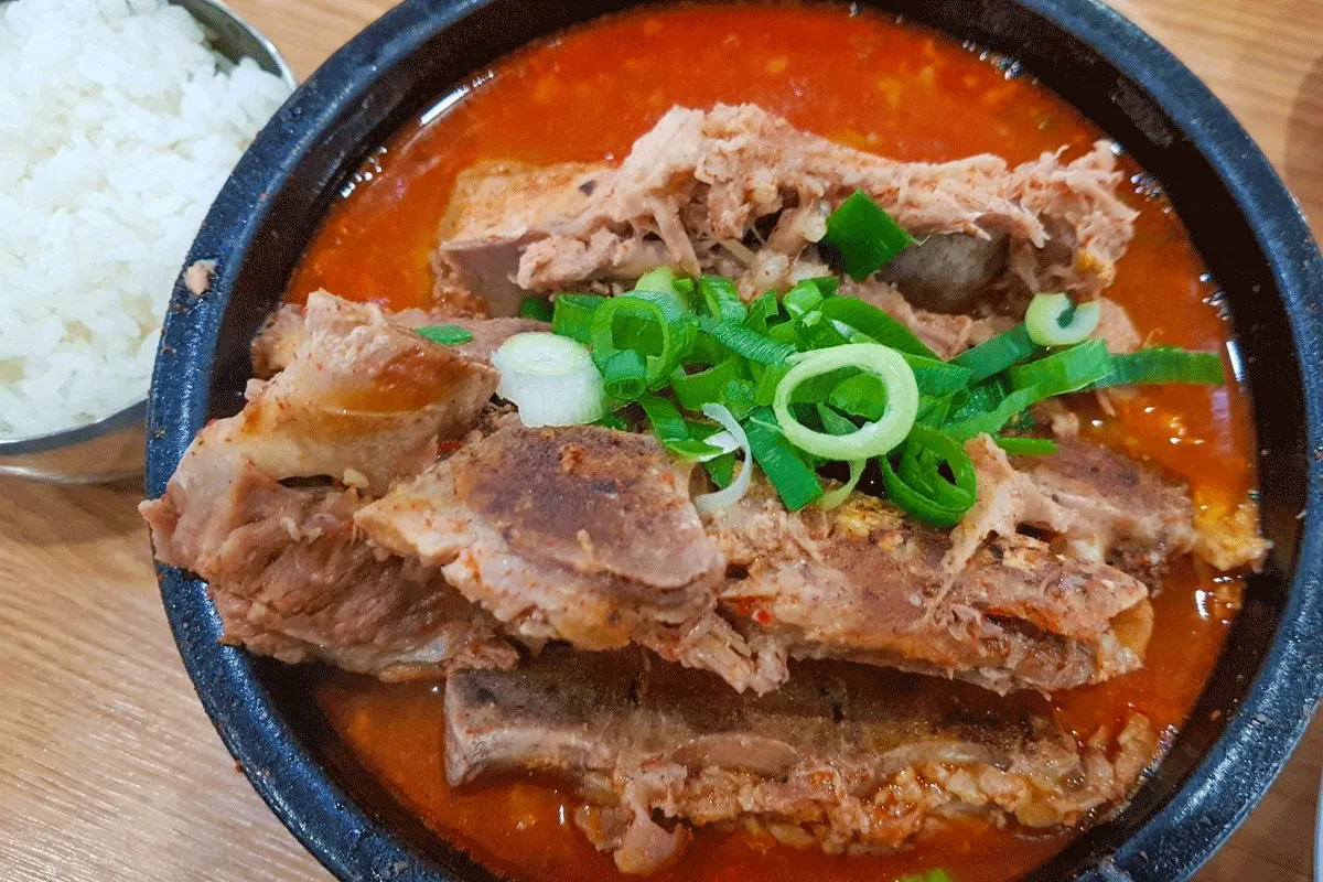 Gamjatang, or pork bone stew, is a spicy stew made by boiling pork backbone over a long period of time. It is a bit spicy, but the deep flavor of the broth and the tender pork meat sliding off the bone is amazing. For more food recommendations, check out our blog below!