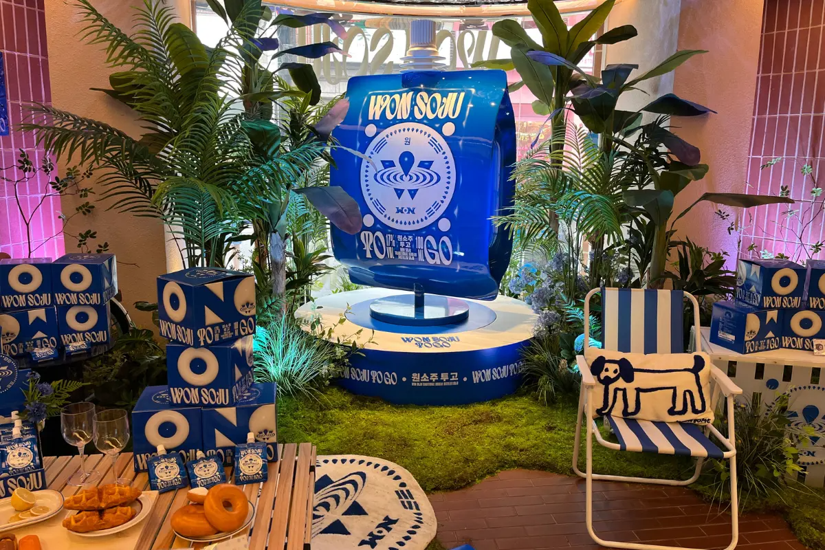 Jay Park's soju brand Won Soju had a pop-up collaboration with GS25 at this special GS25 location called Door to Seongsu to promote the launch of the new WONSOJU TO GO, which is a cute little pouch of soju!