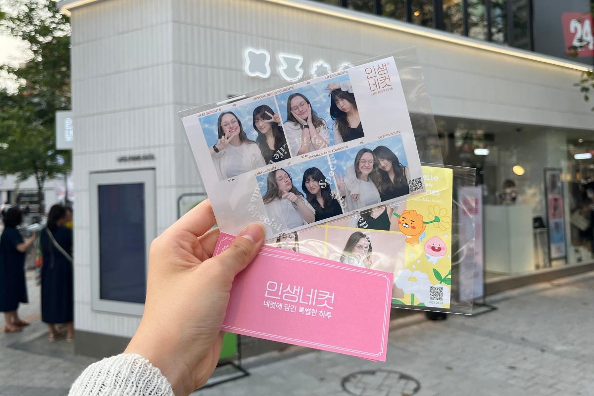 The term "Life Photo" or "인생사진" refers to a photo of oneself that is so nice it may be the best photo of your life! This photo booth took the term "Life Photo" and "Four Cuts" or "네컷", which refers to the four frames of photos, and created the term "Life Four Cuts" or "인생네컷".