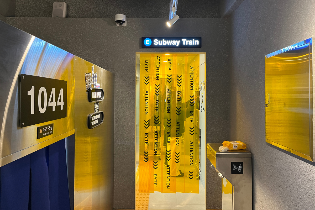 There are two rooms here, one with a metal shaft with graffiti on it, and the subway train. The graffiti room is also quite popular on social media! The subway-themed room is behind the yellow plastic dividers.