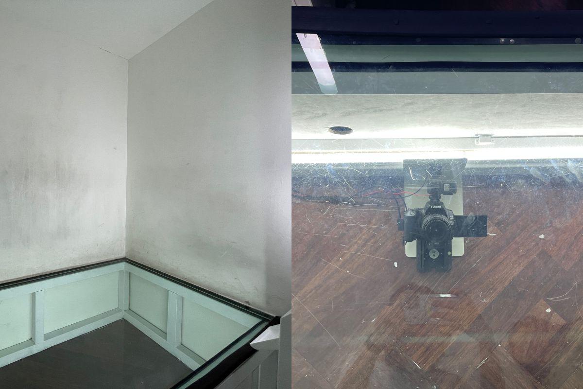 We tried out the low angle photo booth! The room has a clear glass platform with a camera underneath pointing upwards. The monitor screen isn't in view if you're looking at the camera, so it was a bit difficult to see how our photos were turning out as we were taking them.