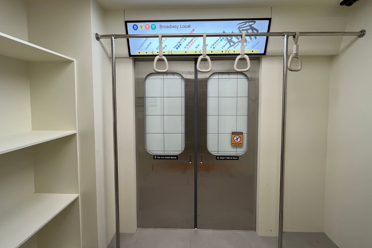 This is what it looks like inside! Doesn't it look like a real subway train cart? It was so cool to see and take photos here!
