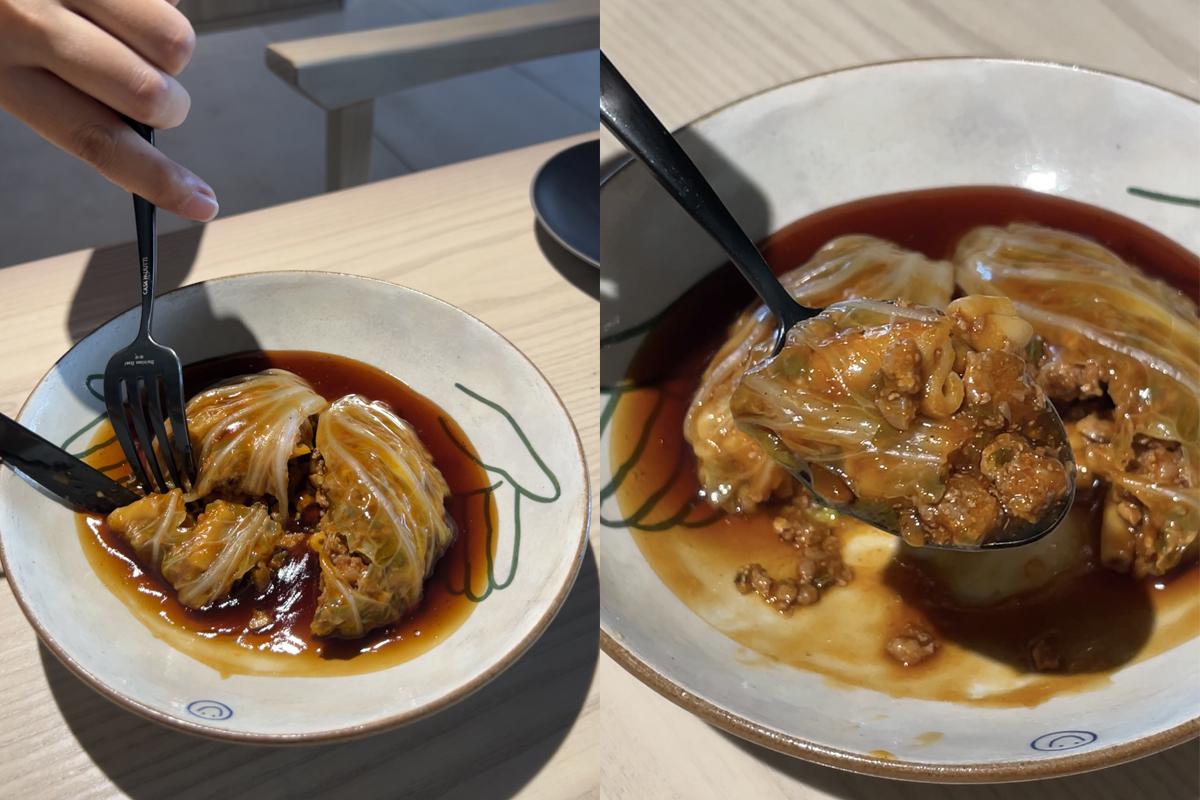 We cut the Cabbage Ssam in half, and I was pleasantly surprised by the generous amount of fillings inside. Upon closer inspection, I noticed that there were macaroni pieces as well. When I ate it together with the meat, the sauce coated everything perfectly, and it complemented the flavors beautifully.