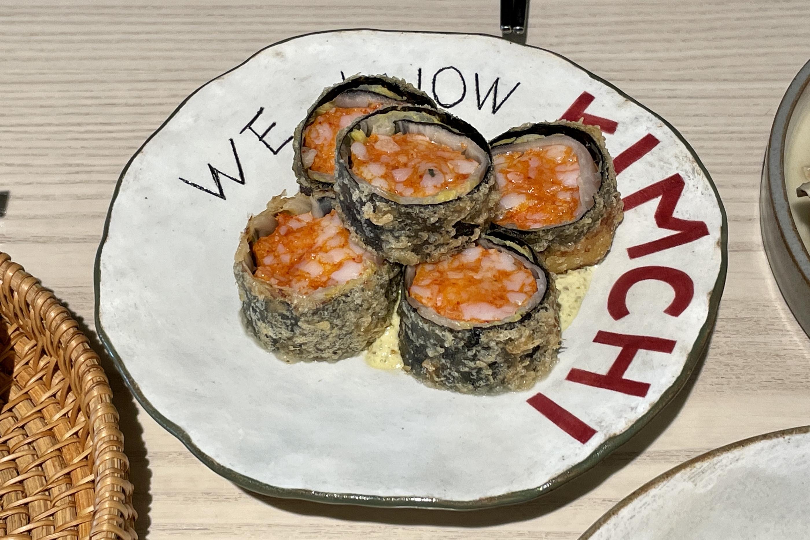 'Kimchi Tempura' is a dish made by wrapping baek-kimchi (white kimchi), shrimp, garlic chive pickles, and gochujangajji (red chili pepper pickles) with seaweed and deep-frying them. Anything deep-fried is delicious, but the idea of deep-fried food with kimchi is quite unique, isn't it?