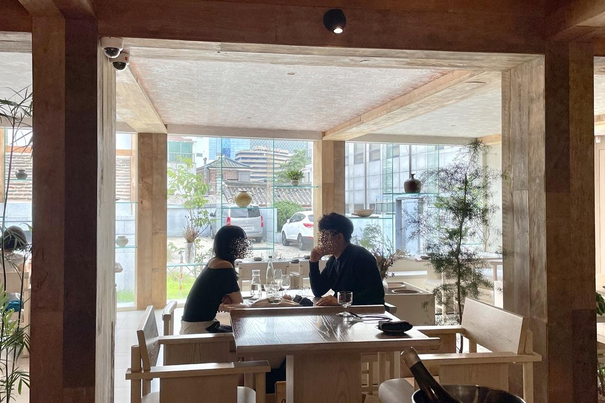 We made our visit on a Sunday afternoon at 3 o' clock and the restaurant was already quite full. From the outside, the space looks like an art gallery and looking in, you can see the many characteristics of a traditional hanok that's been pleasantly preserved.