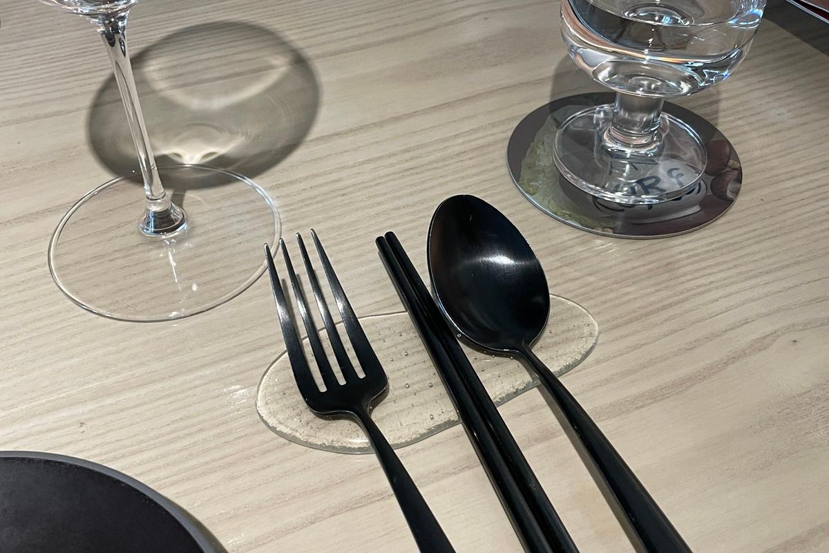 We were seated at a table and the cutlery caught our eye. The cute glass cutlery stand matched perfectly with the chic black cutlery.
