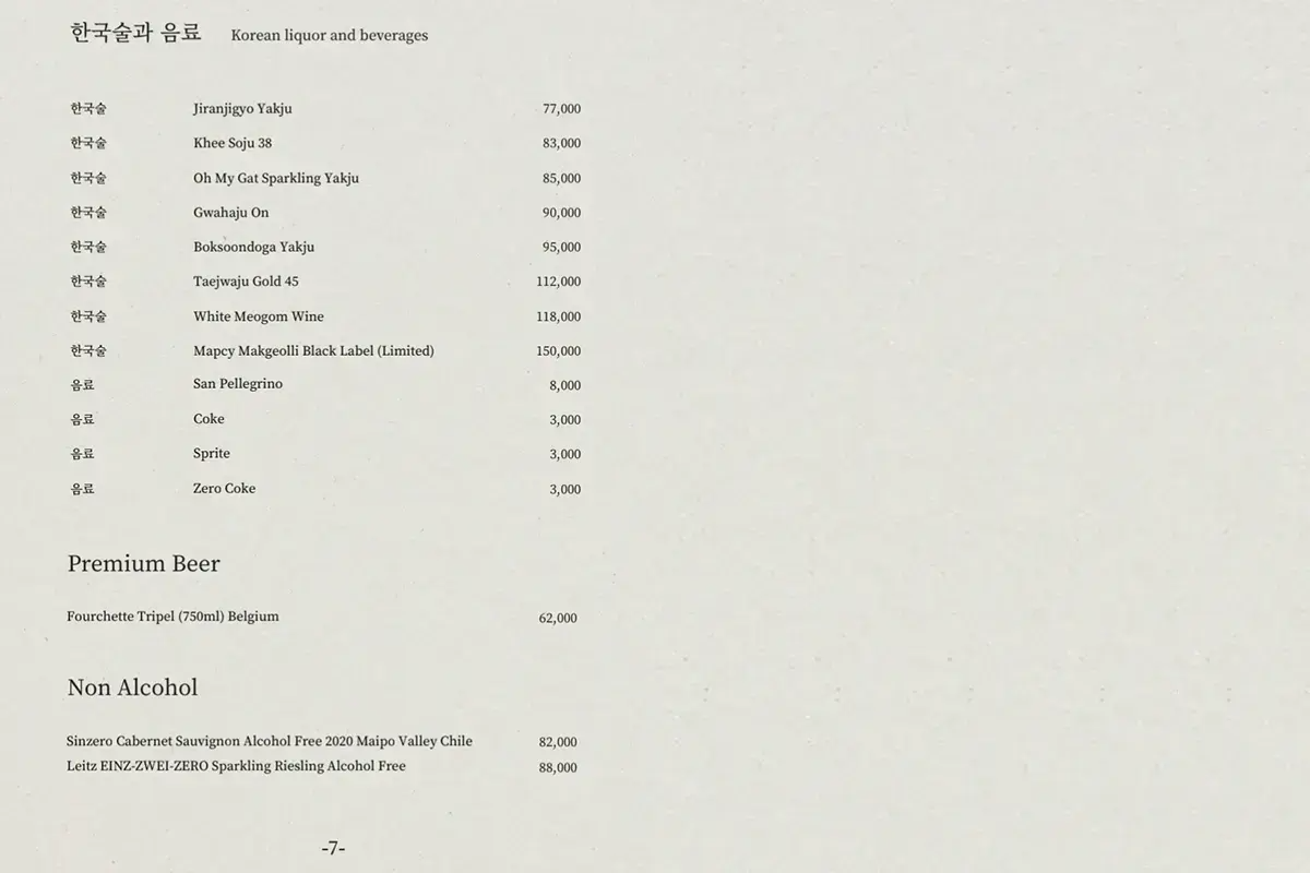 Since ordering alcoholic beverages is a requirement, I also took a look at the drink menu. They had a wide variety of special traditional liquor options, and the price range ranged from 50,000 to 100,000 won, providing a wide range of choices.