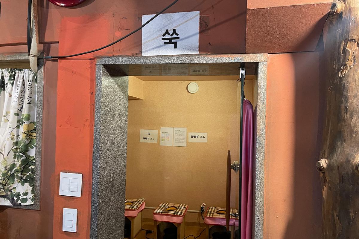 Next to the staircase, there's an artemisia room. Inside, there's a low bath where you can experience steam bathing using steam generated from boiling artemisia. Artemisia steaming is believed to help with irregular menstruation and promote blood circulation. It's especially beneficial for women. If you want to experience the low bath, you'll need to pay an additional fee of 30,000 KRW on-site.